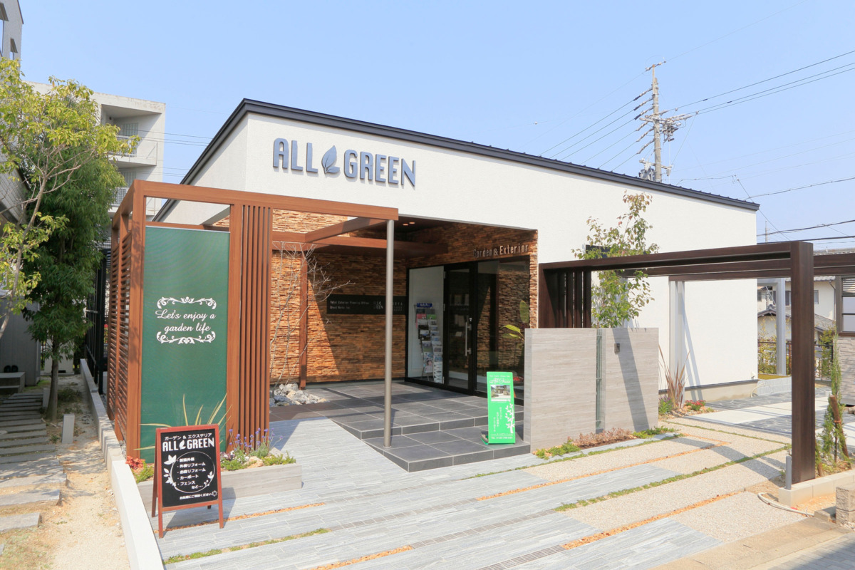 オールグリーン1号店となる名古屋店は名古屋市昭和区八事の地で住宅総合展示場内にて体感型モデルガーデンを併設した、常時3席同時打ち合わせ可能なショールームとなっております。