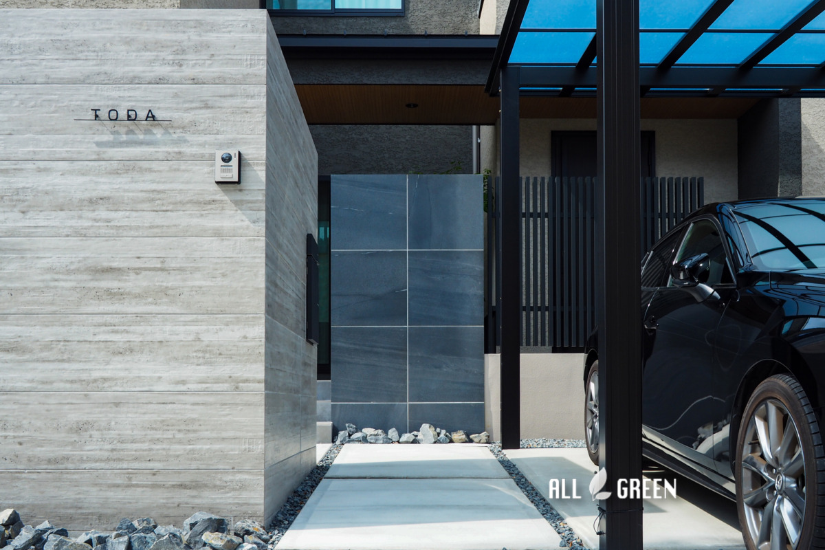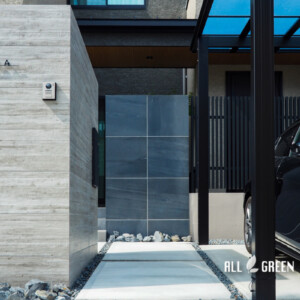 めずらしい柱奥行延長でかっこよくて、生活しやすいデザインの外構に。