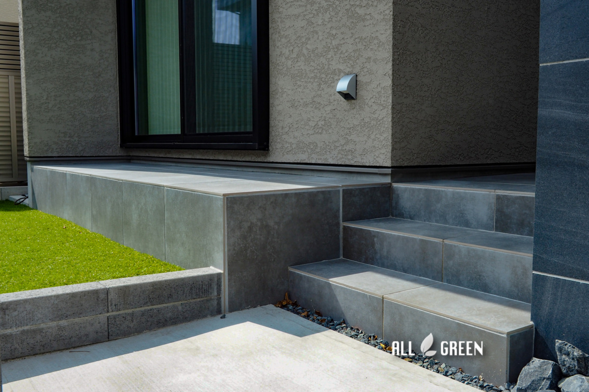 内部のお庭内にはお施主様からご要望頂いていた「掃き出し窓前にステップ」を施工しています。