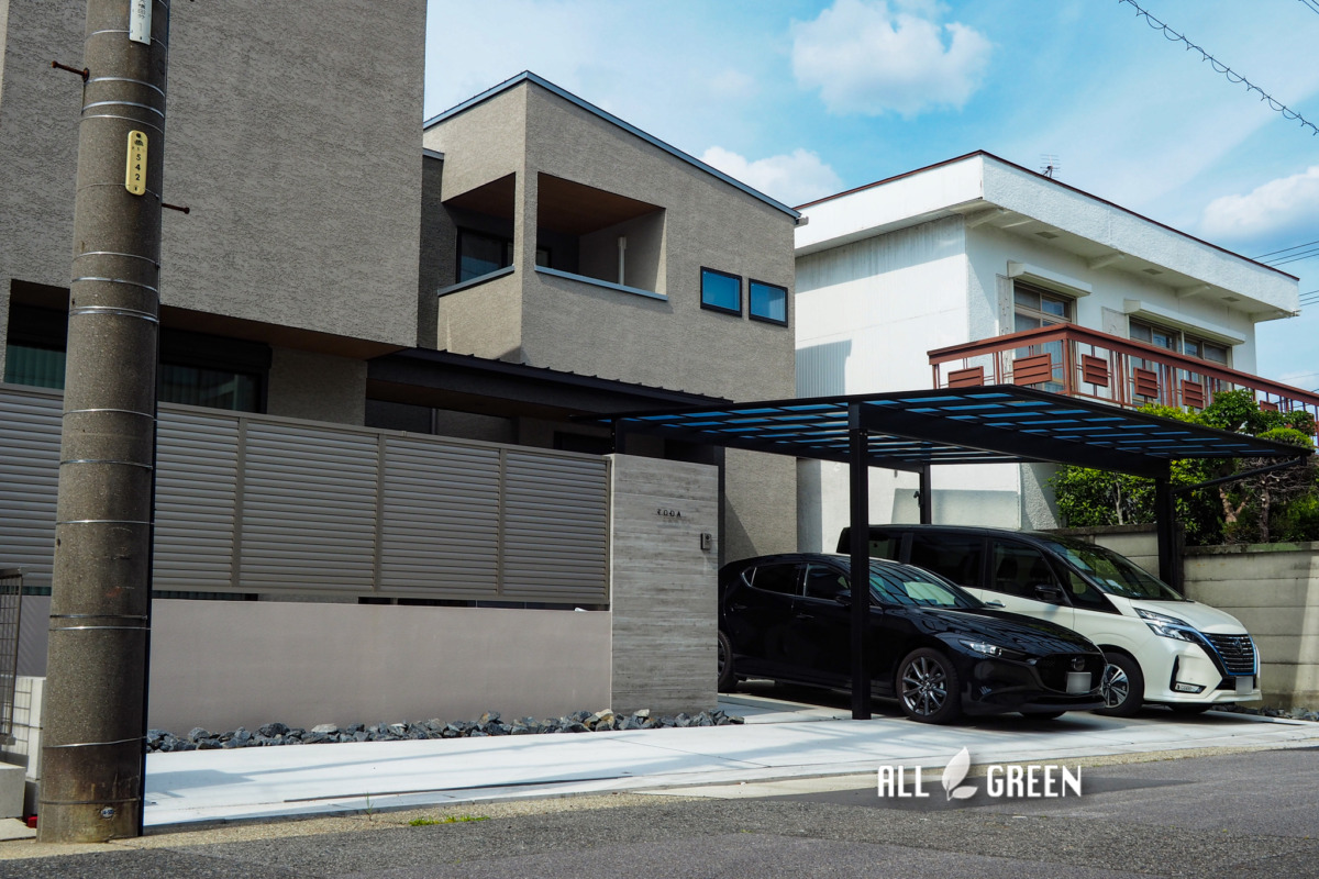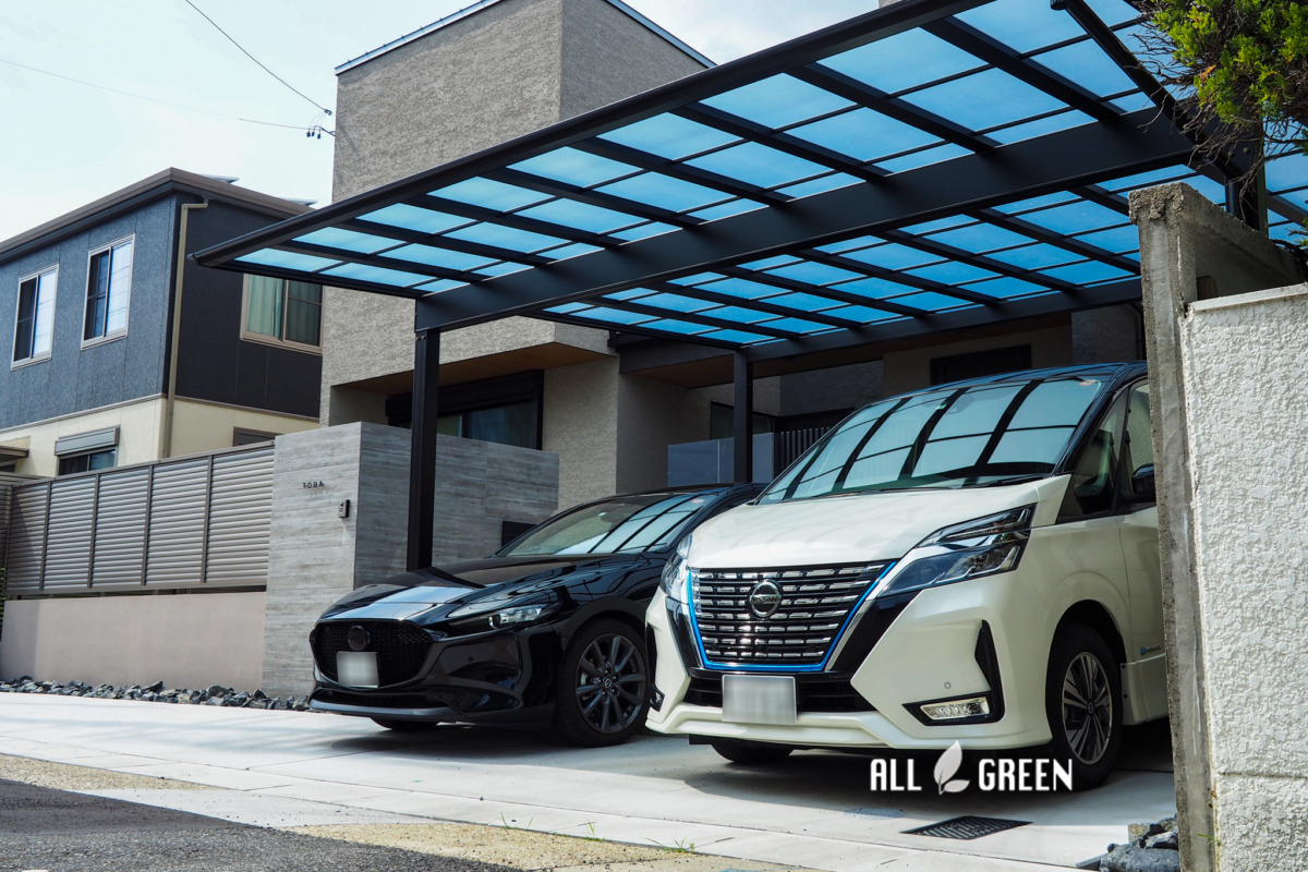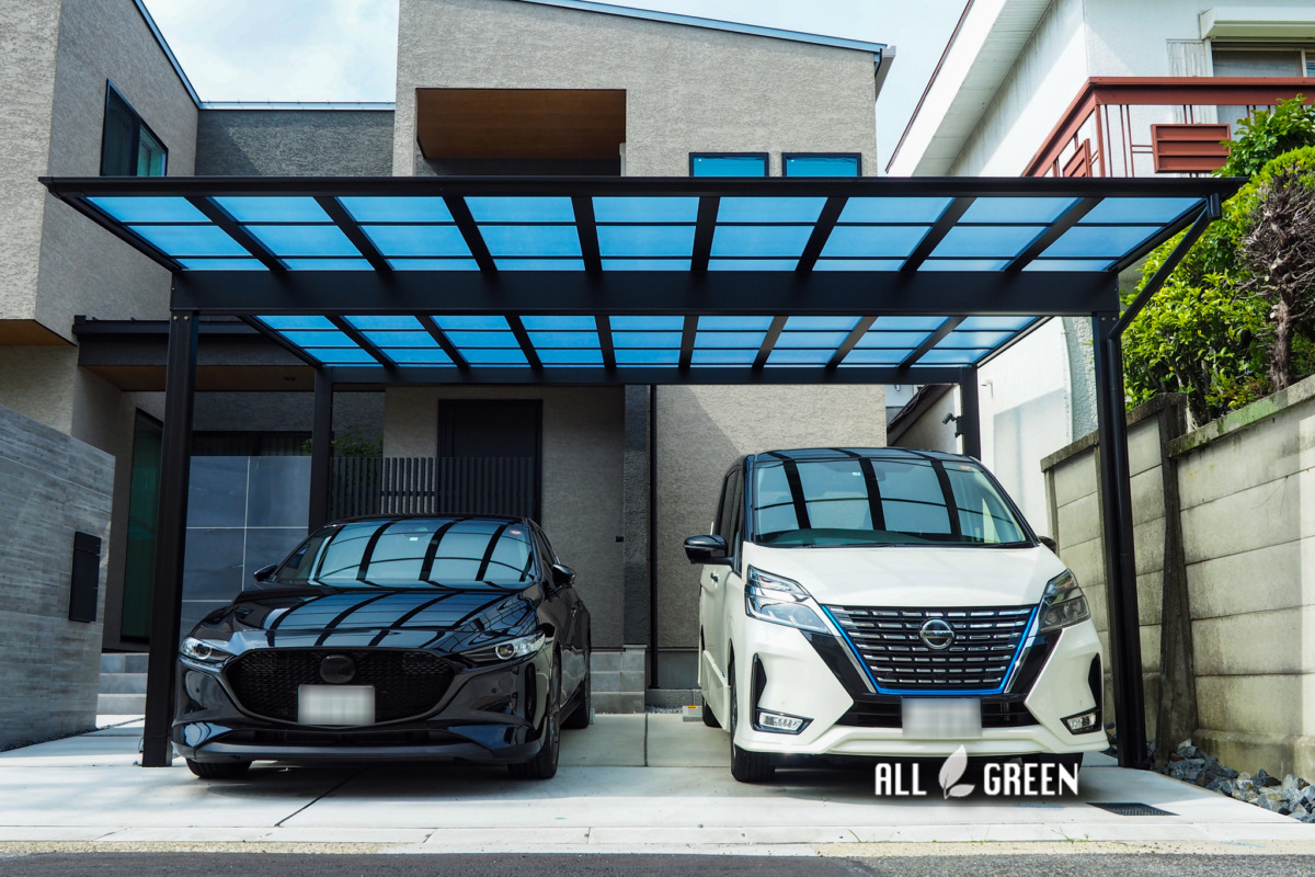 まず最初にご要望頂いた2台用カーポートは、LIXILのフーゴFを施工。