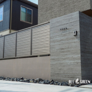 門塀横にずらっと施工されたフェンスは格子と格子の間の隙間が狭い為、その奥に広がるお庭での生活を前面道路からしっかり目隠ししてくれます。